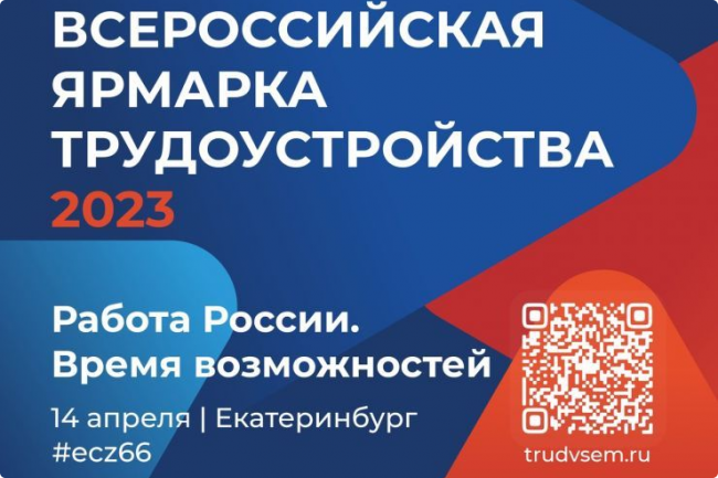 Всероссийская ярмарка трудоустройства «Работа России. Время возможностей» #Время_Возможностей2023 проходит 14 апреля в Свердловской области. Основная цель ярмарки трудоустройства – не только быстрый подбор работы, но и помощь в планировании карьеры.