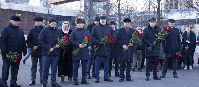 Цветы к подножию монумента возложили полномочный представитель Президента РФ в УрФО Владимир Якушев, первый заместитель губернатора Свердловской области Алексей Шмыков, председатель комитета Госдумы РФ по государственному строительству и законодательству Павел Крашенинников, заместитель председателя Законодательного Собрания Свердловской области Виктор Якимов, председатель комитета Законодательного Собрания по региональной политике и развитию местного самоуправления Михаил Зубарев, глава Екатеринбурга Алексей Орлов, Уполномоченный по правам человека в Свердловской области Татьяна Мерзлякова.