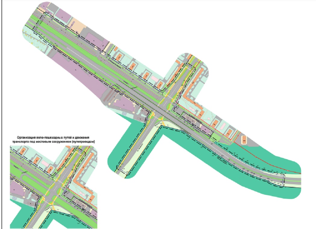 Двухполосная эстакада протяжённостью около 0,5 км пройдет над Объездной дорогой и будет иметь пять съездов. Под ней проложат два дублера, чтобы автомобилям можно было разворачиваться. Объездная дорога таким образом станет четырехполосной, а вместе с улицей Начдива Онуфриева проезжие части смогут вместить до шести потоков – по три потока в каждую сторону.