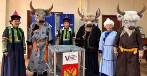 Члены избирательных комиссий собирали голоса по домамНекоторые россияне, голосовавшие 15 марта, подошли к процессу с выдумкой. Они явились на избирательные участки в костюмах разных животных. Были замечены буйволы, медведи, гуси, бобры, пингвины и белки. Избиратели также наряжались и в национальные костюмы.
