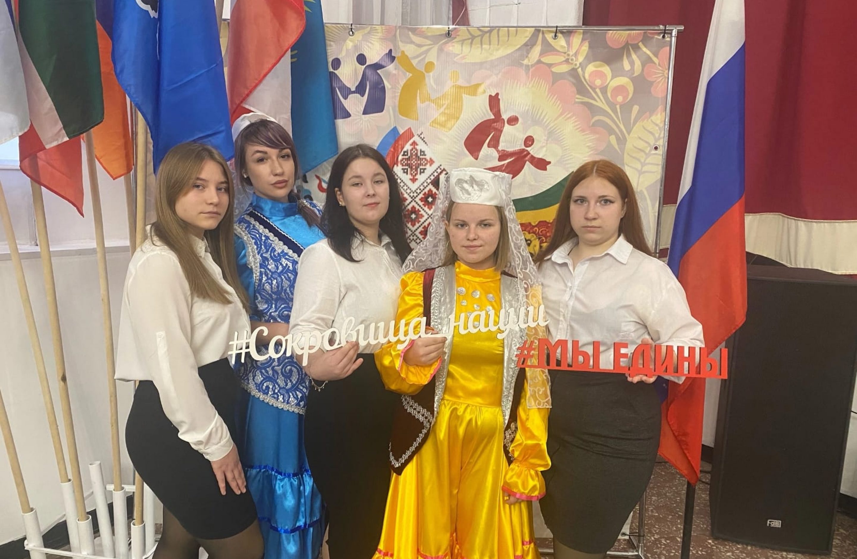Ефремова Дарья, Ландышева Софья, Яковлева Виталия, группа ПКД-2 представляли осетинскую культуру, под руководством преподавателяей– Чепчуговой Татьяны Николаевны и Ряковой Любовь Васильевны.