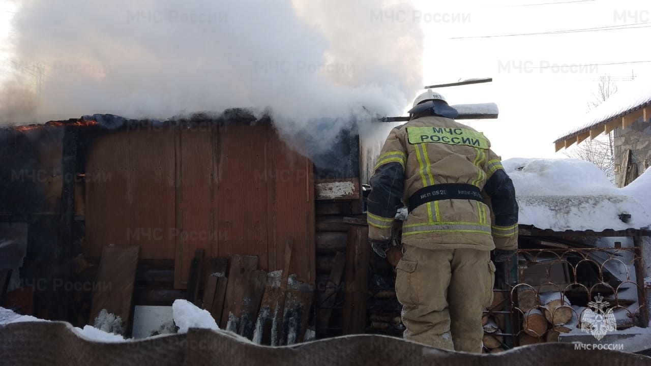 04.01.2023г. в 13:36 (мест) поступило сообщение о пожаре по адресу: Свердловская область, г. Красноуральск, ул. Устинова. На площади 30 кв.м повреждены кровля, перекрытия, стены сарая. В тушении пожара были задействованы 2 единицы техники, 9 человек личного состава. В 13:42 (мест) огонь локализован, в 13:45 (мест) открытое горение ликвидировано, проливка и разбор сгоревших конструкций завершены в 14:40 (мест).