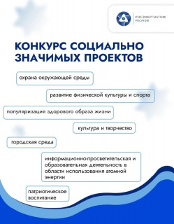 К участию в конкурсе принимаются социальные проекты некоммерческих организаций в области охраны окружающей среды, образования, просвещения, науки, культуры, искусства, здравоохранения, пропаганды здорового образа жизни, физической культуры и спорта, а также развития гражданского общества и содействия духовному развитию граждан, проживающих на территориях расположения атомных станций Российской Федерации. Победители получат финансирование на реализацию своих идей.