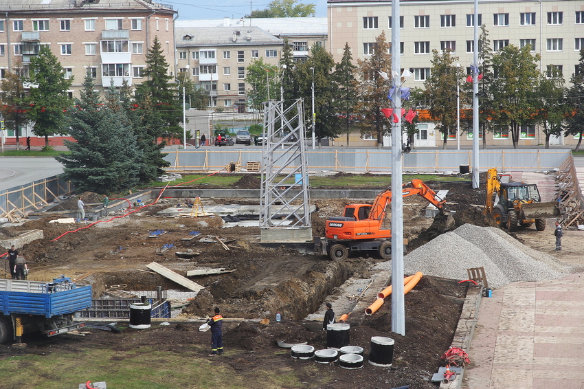 На строительной площадке стелы «Город трудовой доблести» на площади Ленкома продолжаются работы.