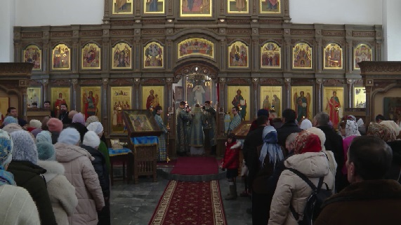 Первый день спортивных сборов для юных жителей Донбасса начинается в храме. Во время службы ребята молятся о мире на их родной земле, а также ставят свечки за здравие родных.