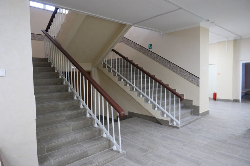 За последние месяцы здесь преобразились главная лестница и холлы первого и второго этажа. Также отремонтировали потолок и кровлю спортзала и эвакуационные выходы, а на втором этаже деревянные окна заменили на пластиковые.