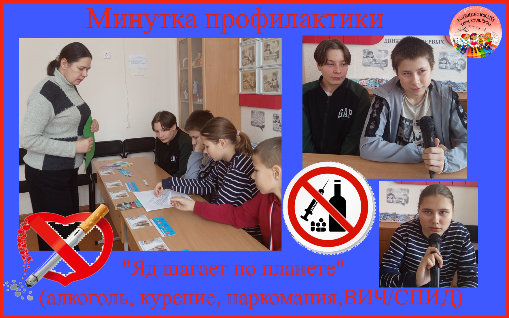 Подросткам рассказали, что алкоголь, курение и наркотики наносят непоправимый вред организму человека. Ребята прослушали информацию о проблемах наркомании в подростковой среде, рисках для здоровья, опасности приобретения инфекционных болезней, в частности такой, как ВИЧ-инфекция — одной из важнейших и трагических проблем мирового масштаба.